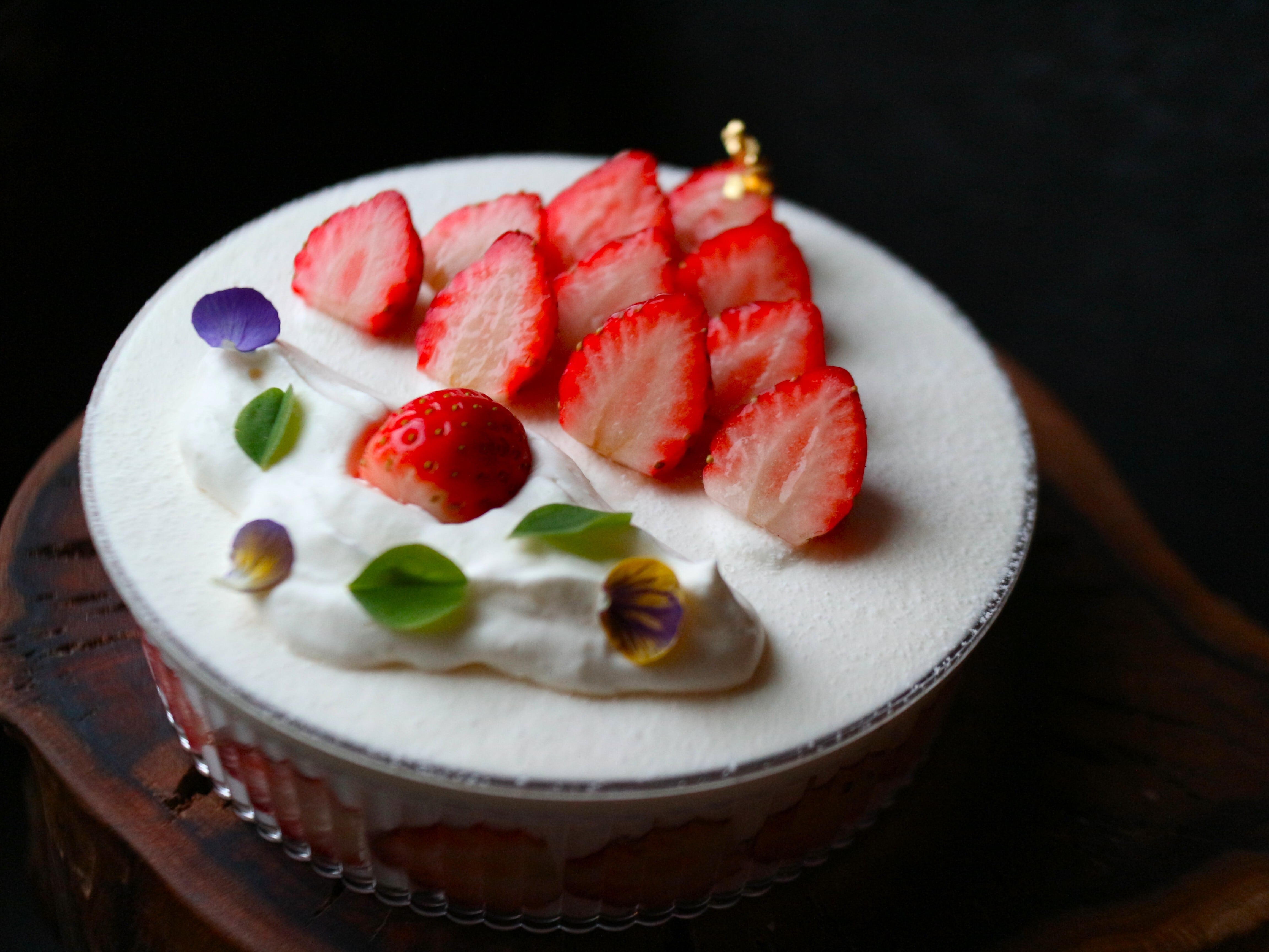 フレッシュな苺と、やわらかなスポンジに、焼き苺ソースと軽やかな生クリームを合わせ、苺の香りと甘酸っぱさを引き立てています。