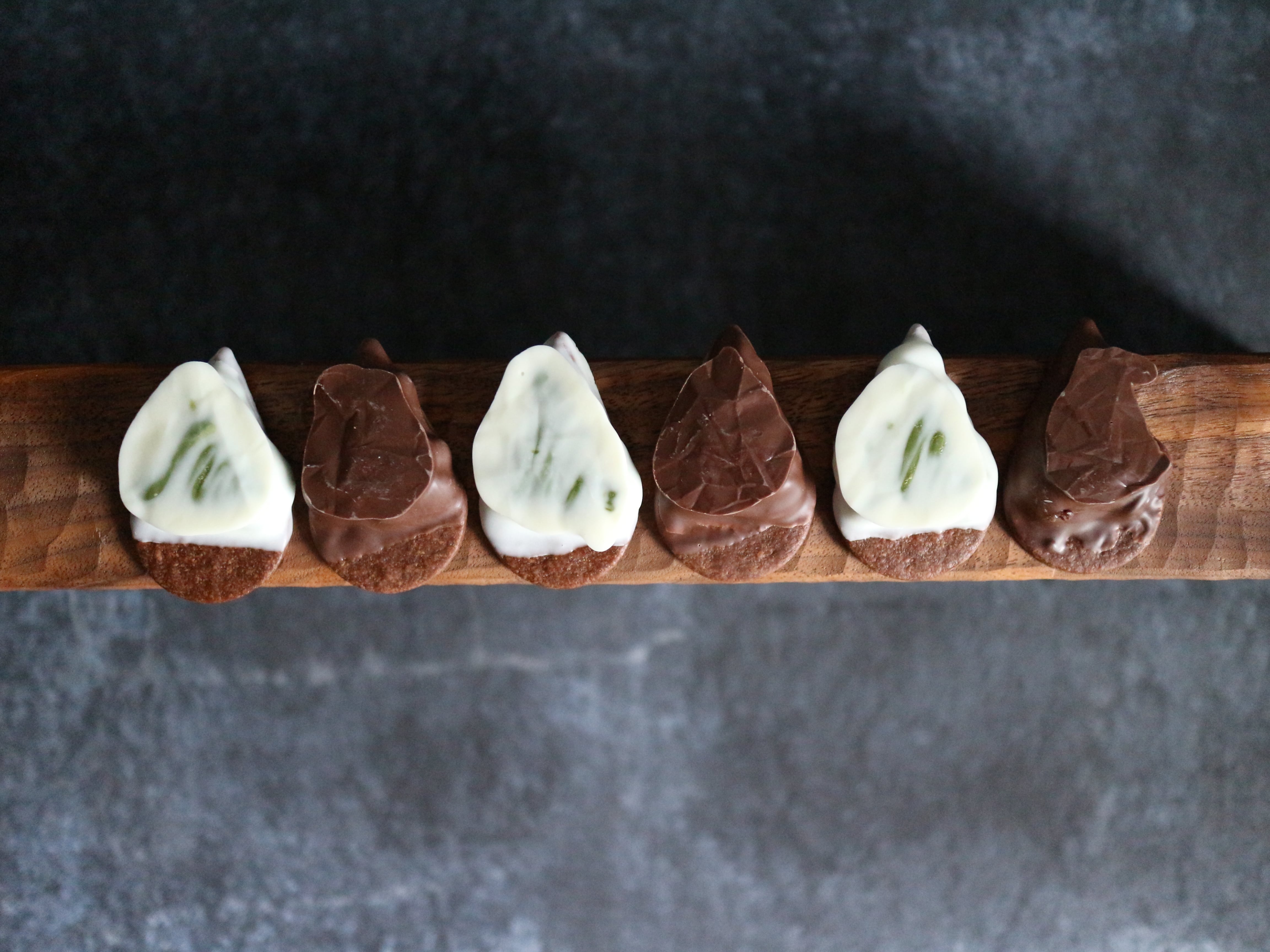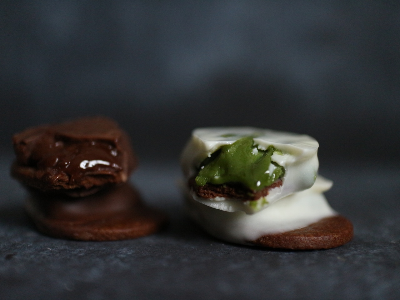 抹茶の生ショコラに、ベルベーヌの薫りをうつしたショコラブラン。
