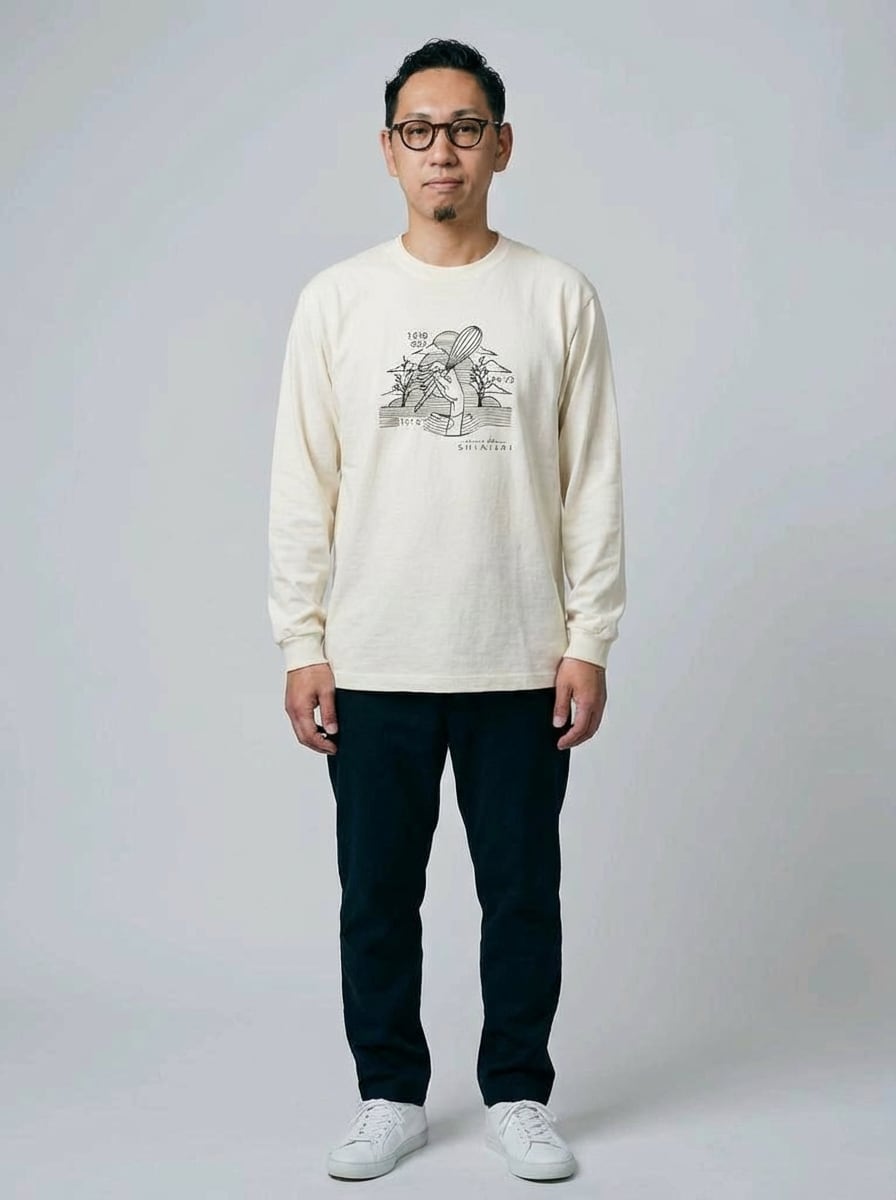 Lサイズは、身長165–180cmの方にゆとりを持って着ていただけます。